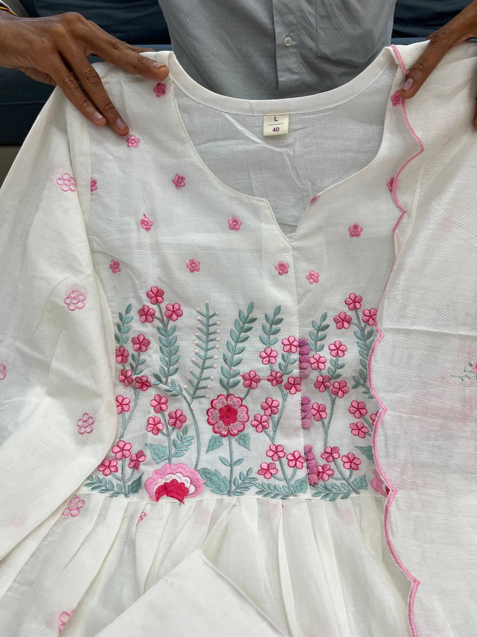 Pure Mul Mul Cotton Embroidered Kurta Pant Dupatta Set|| SA925-1114