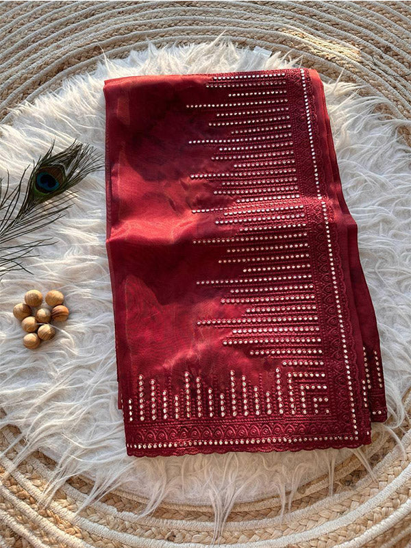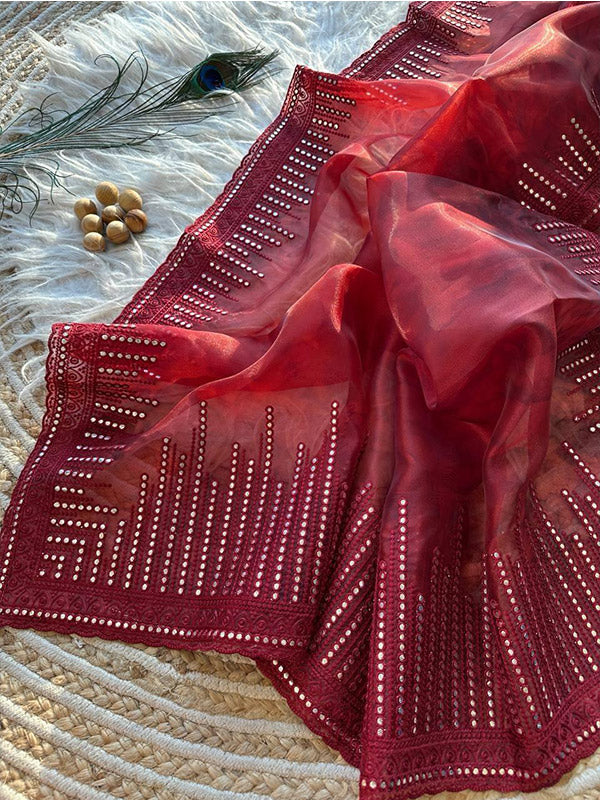 Pure Organza Saree with Embroidery & Gotapatti Work | Structured Print & Cutwork Pallu SA625-772