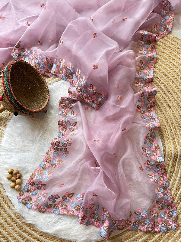 Pure Organza Silk Saree with Beautiful Embroidery & Raw Silk Plain Blouse SA625-763