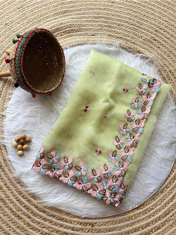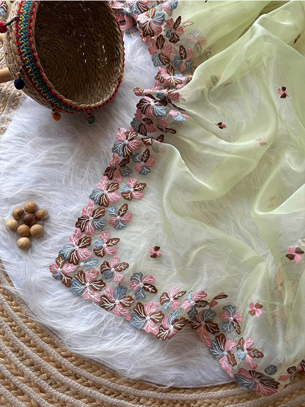 Pure Organza Silk Saree with Beautiful Embroidery & Raw Silk Plain Blouse SA625-764