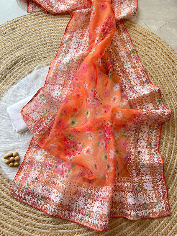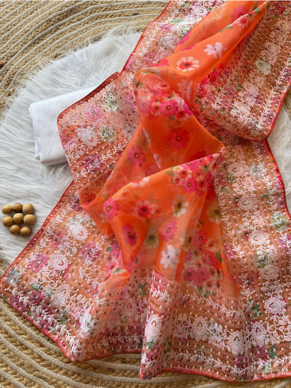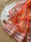 Pure Organza Silk Saree with Digital Floral Print & Chikankari Work Border SA625-766