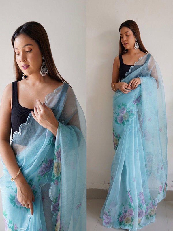 Pure Organza Silk Saree with Floral Print & Viscose Thread Sequins Work Border SA625-760