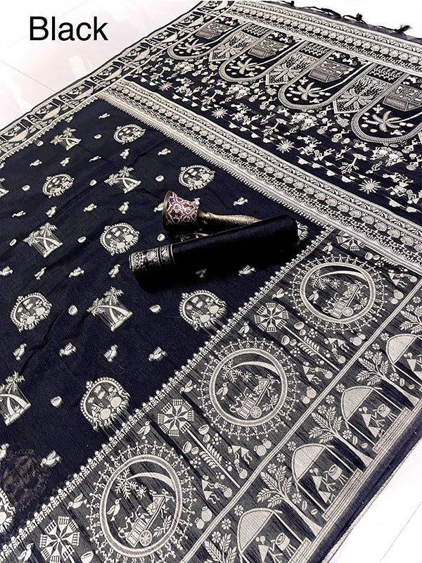 Elevate your ethnic wardrobe with this Pure Soft Banarasi Raw Silk Saree, beautifully crafted with intricate Kalamkari-style weaving. The luxurious fabric drapes gracefully, offering a rich traditional look combined with all-day comfort.