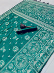 Elevate your ethnic wardrobe with this Pure Soft Banarasi Raw Silk Saree, beautifully crafted with intricate Kalamkari-style weaving. The luxurious fabric drapes gracefully, offering a rich traditional look combined with all-day comfort.