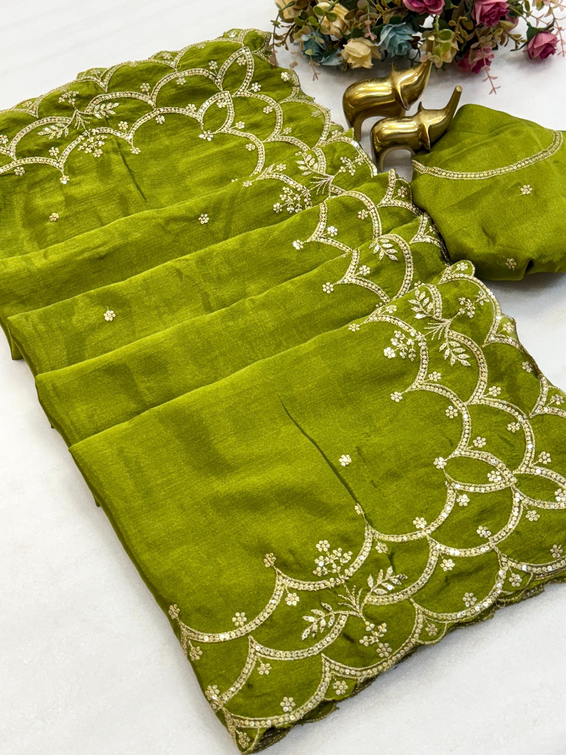 Pure Soft Chinon Silk Saree with Embroidery SA1225-1648