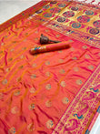 Pure Soft Gold Zari Kanchivaram Paithani Silk Saree with Contrast Peacock Border SA625-796