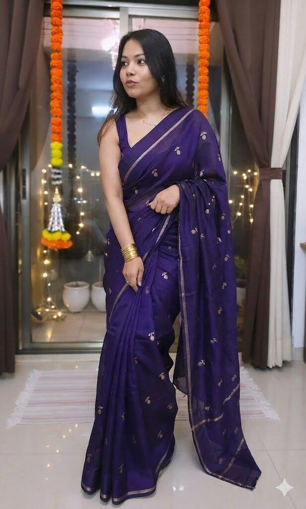 Elevate your festive style with this Pure Soft Viscose Silk Saree, a perfect blend of traditional weaving and modern elegance.
