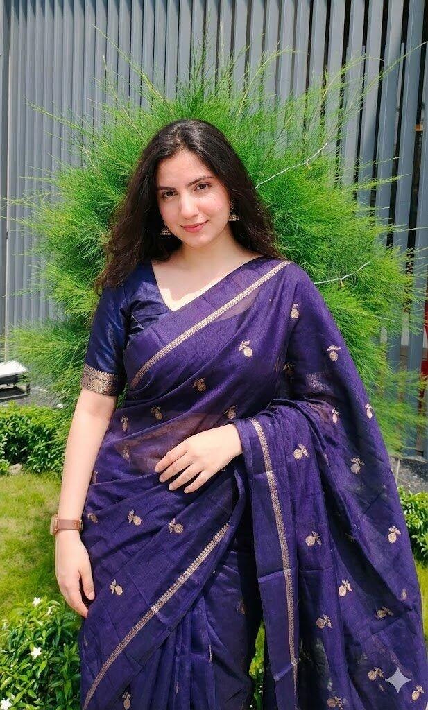 The saree features beautiful jacquard leaf figure designs all over, highlighted by a sleek satin border on both sides that adds a touch of luxury.