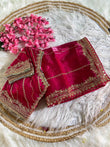 ake a glamorous style statement with this Pure Soft Zimmy Choo Silk Designer Saree, crafted to turn heads at every celebration. The saree is beautifully adorned with intricate embroidery and sequin work, featuring a heavy designer border enhanced with Lehariya sequin detailing all over the saree.