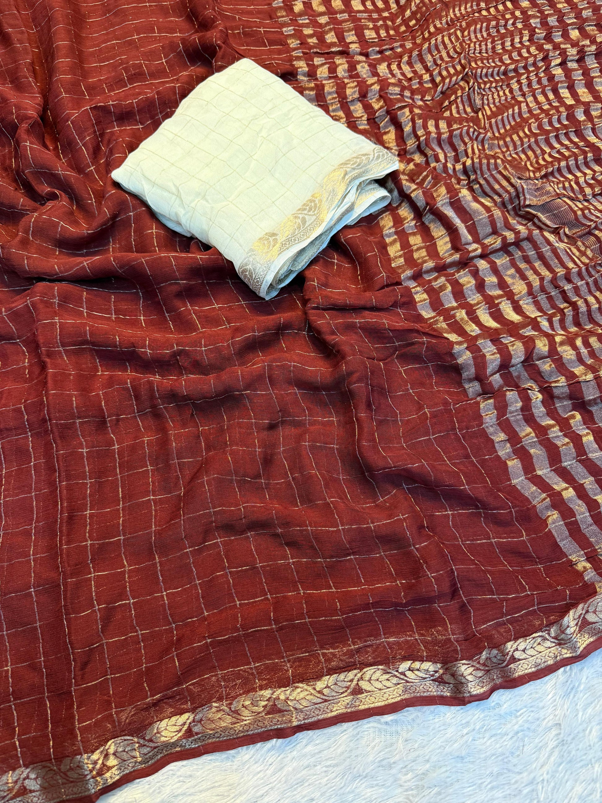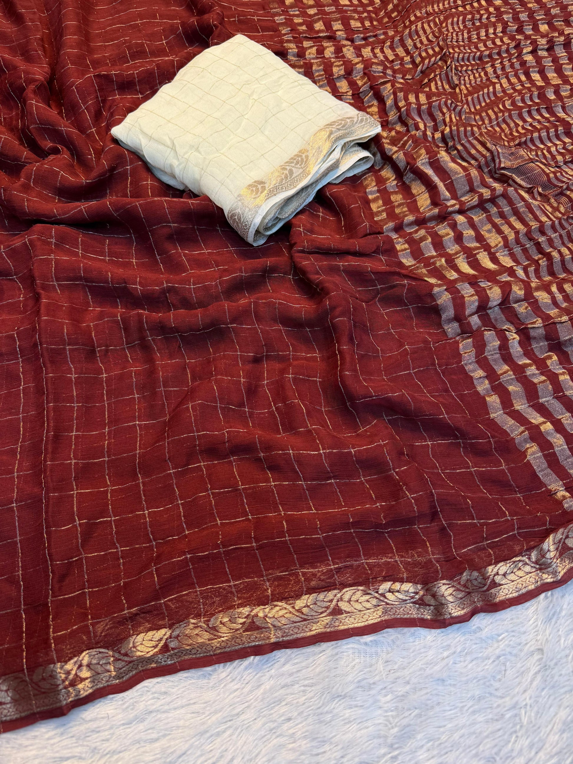Pure Viscose Chinon Saree with Contrast Viscose Blouse SA1025-1328