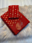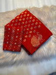 This saree features a richly woven pallu that adds grandeur to your drape, paired with a pure viscose jacquard blouse for a complete and refined look.