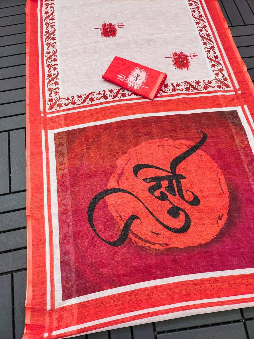 Red Devi – Durga Puja Special Linen Saree SA825-1134