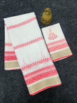 🌸 Saree Fabric: Premium Linen with Silver Jari Border
