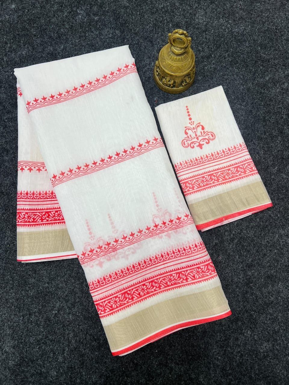 Red Devi – Durga Puja Special LinenSaree with Digital Print SA825-1005