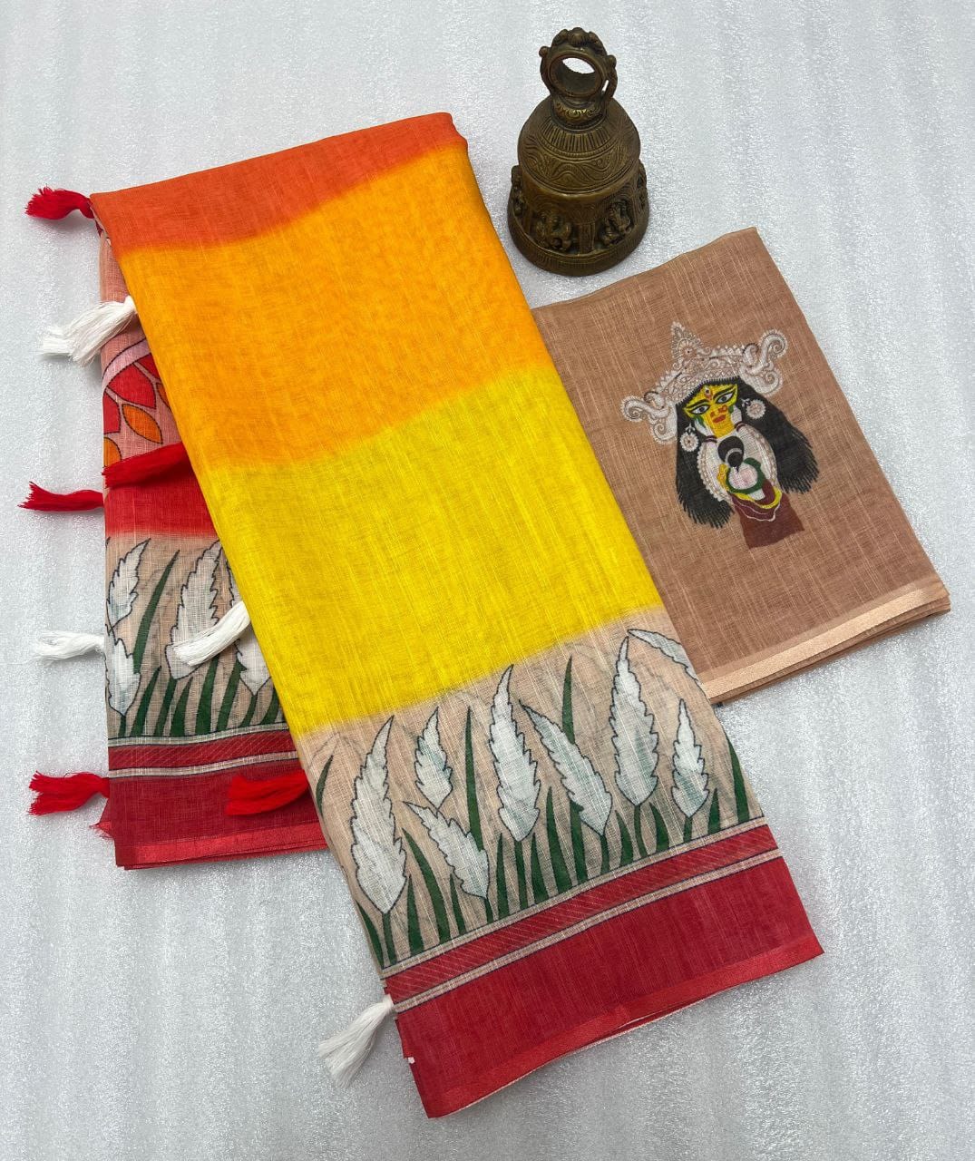 Red Devi – Durga Puja Special LinenSaree with Digital Print SA825-1013