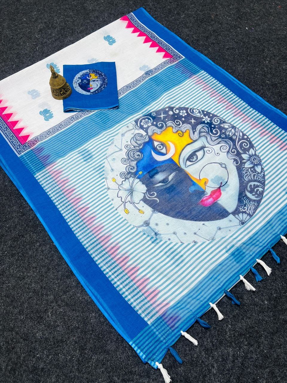 Red Devi – Durga Puja Special LinenSaree with Digital Print SA825-998