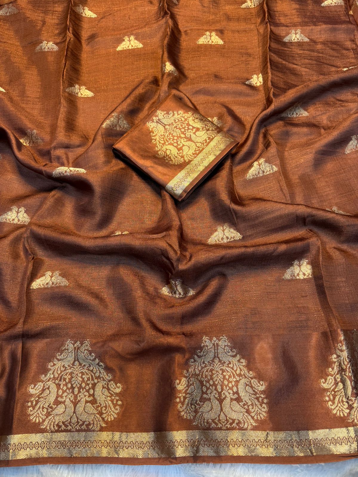 Grace your special occasions with this rich viscose saree, beautifully woven with elegant golden zari motifs that add a royal glow to your look.