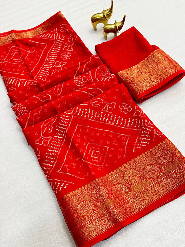β¨ Bandhani Dola Silk Saree with Heavy Jacquard Border β¨