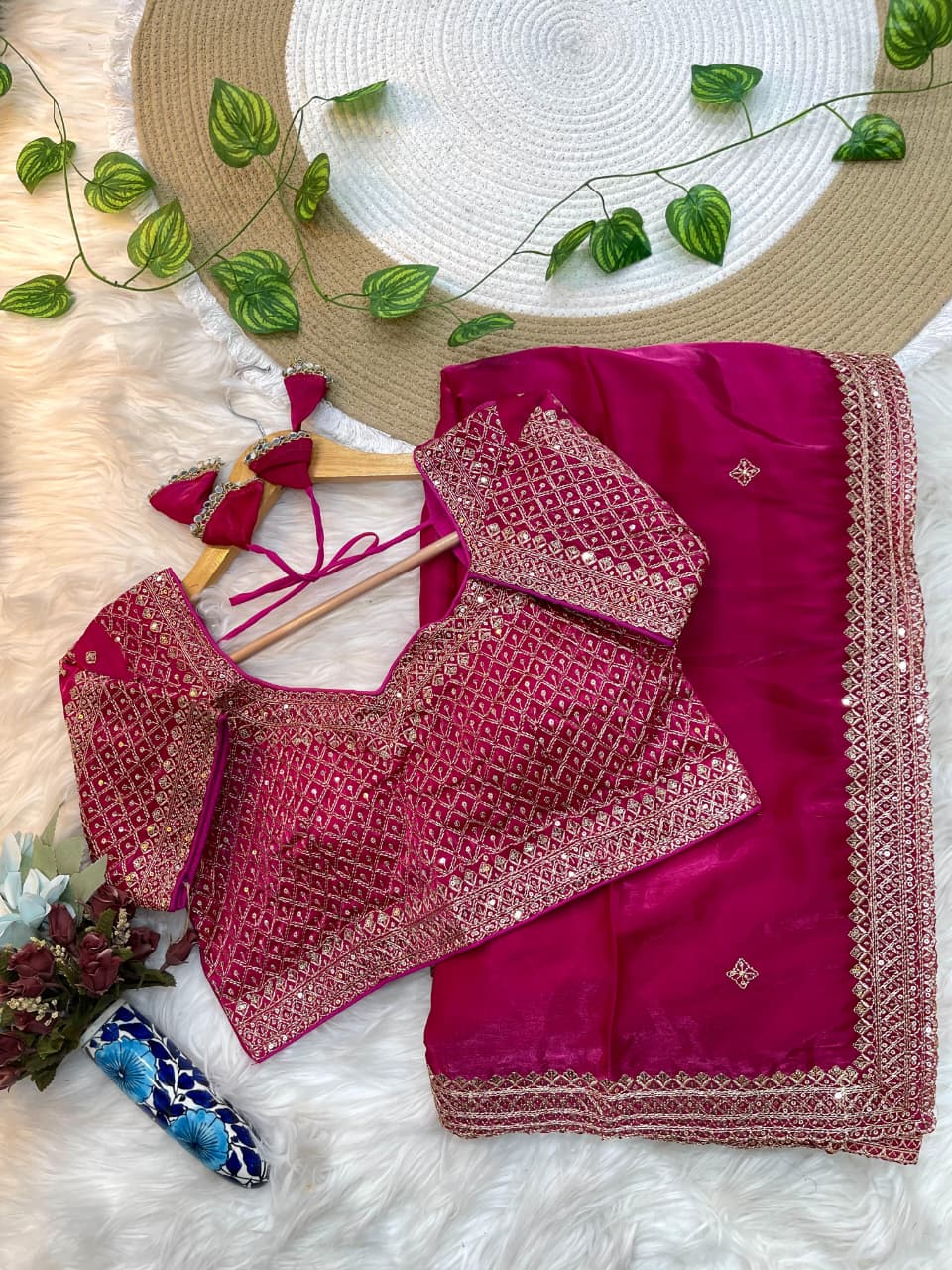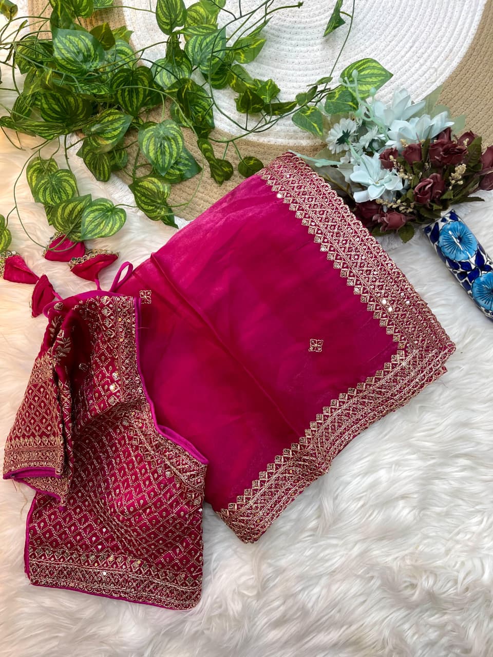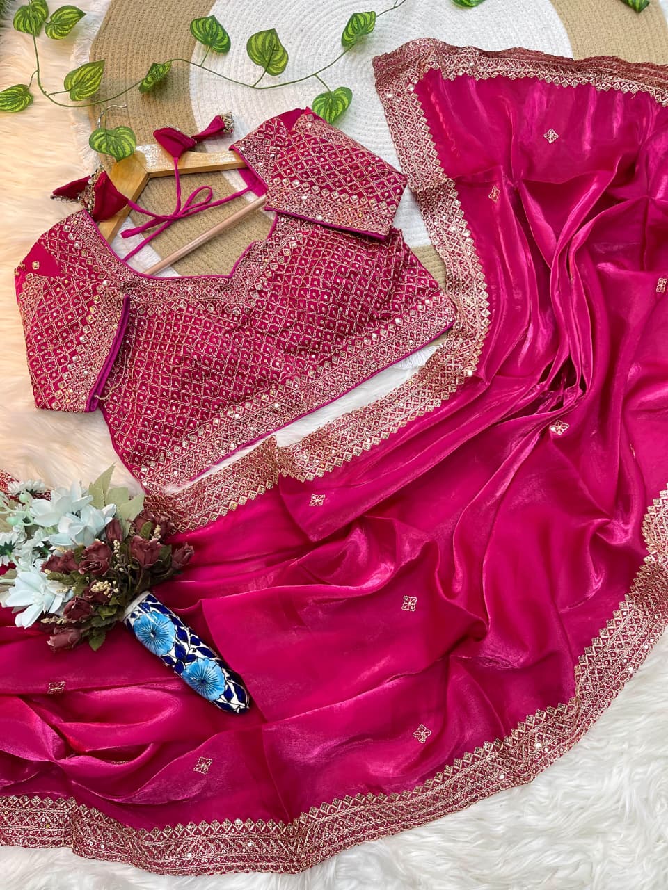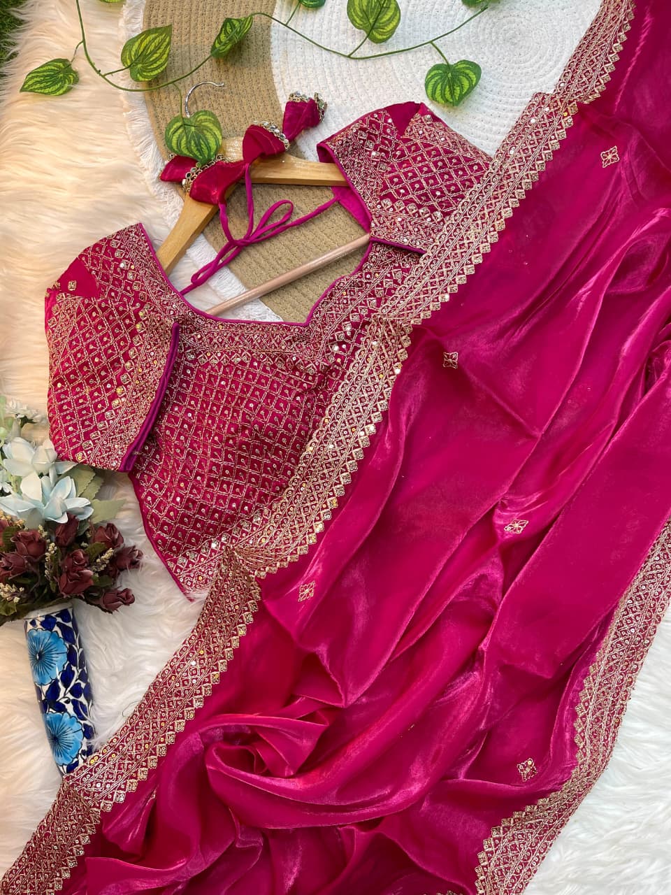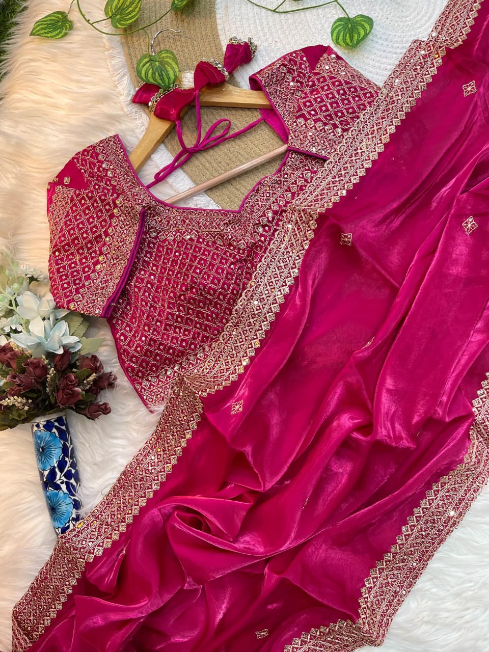 👚 Blouse: Fully Stitched, Worked Zimmy Choo Silk with Sequin Lace