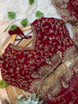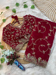 Paired with a fully stitched designer blouse (up to size 42”) crafted on running fabric, featuring full sleeves, heavy embroidery, and fancy tassel accents, this saree is a ready-to-wear masterpiece.