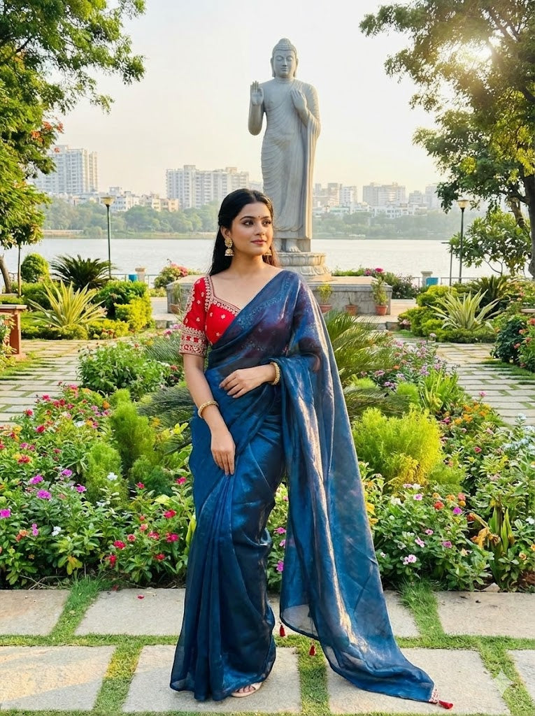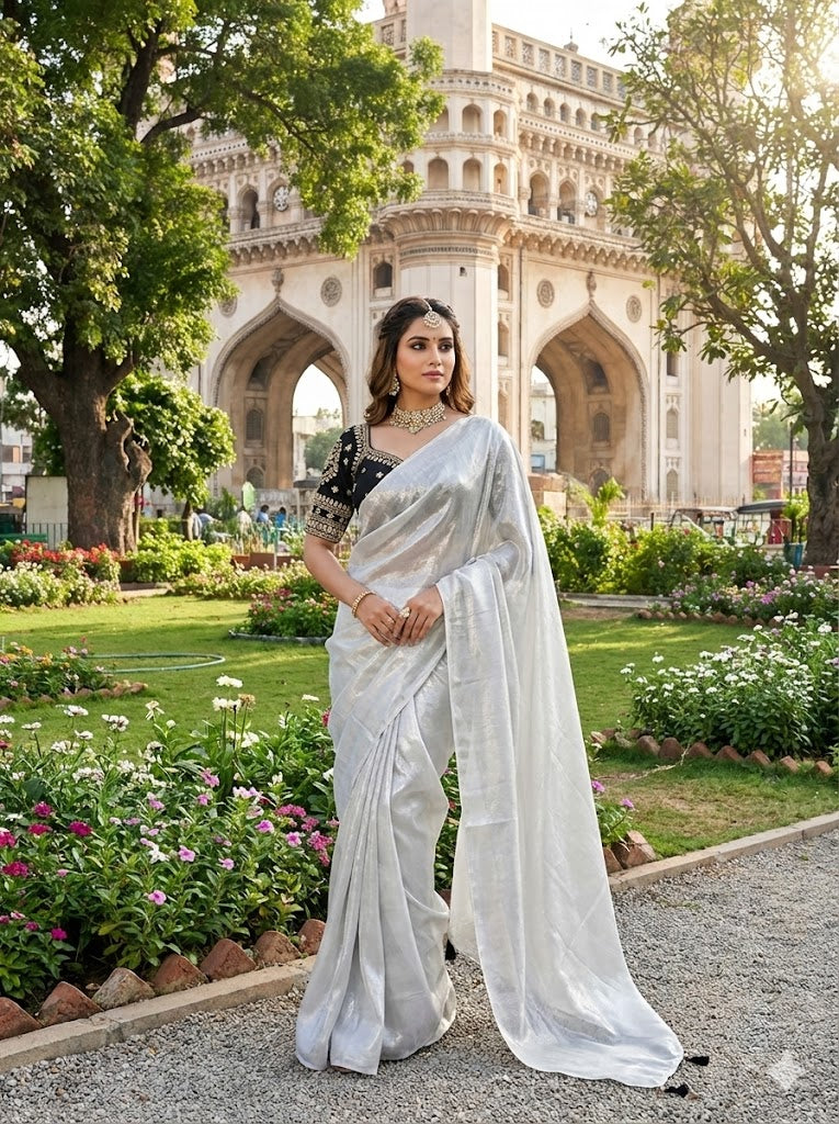 Space Silk Saree, designed for those who love a touch of glamour without compromising on comfort. The unique texture of Space Silk offers a mesmerizing sheen that drapes beautifully around the body, making you look effortlessly graceful.