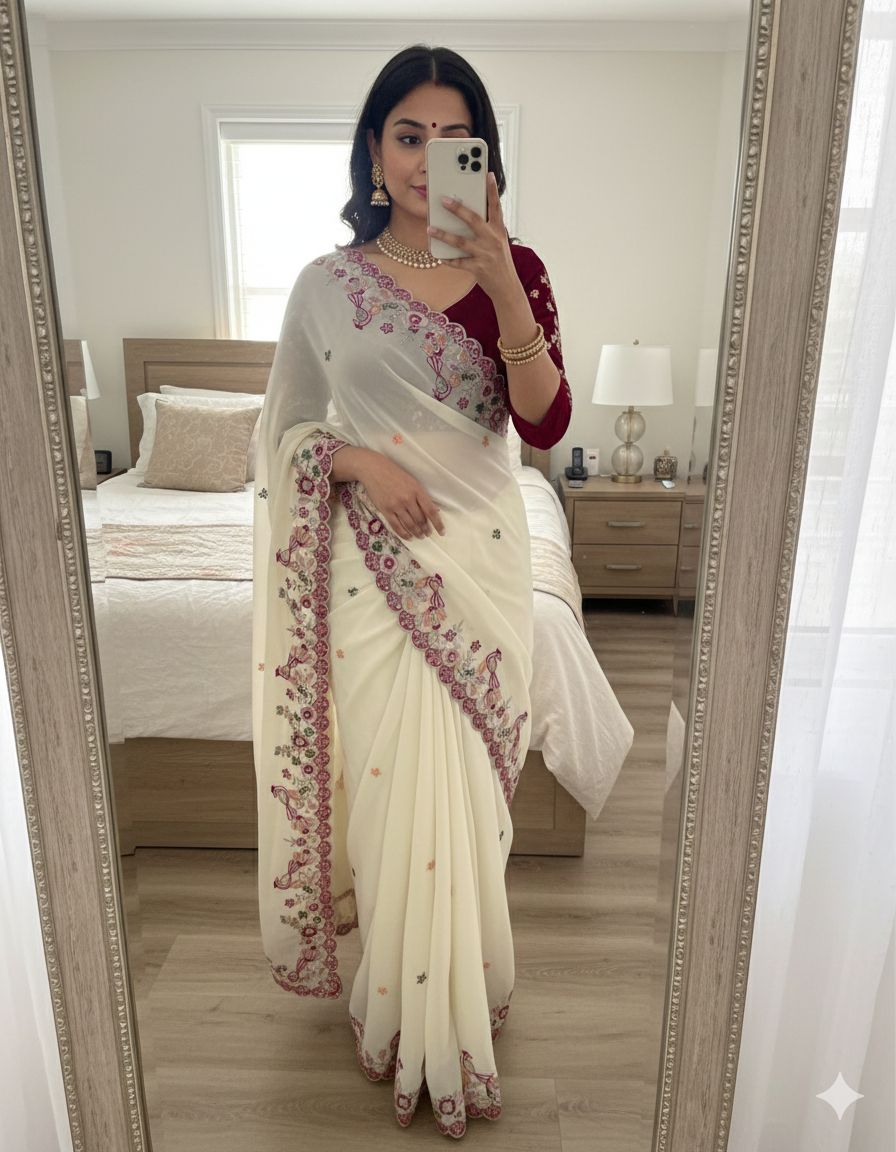 Star Georgette Saree with Heavy Sequin Embroidery Work SA126-1740