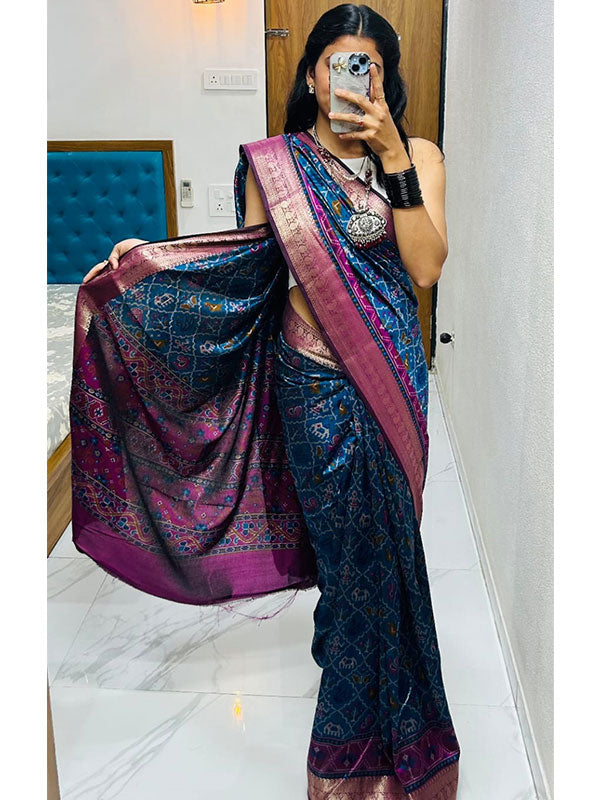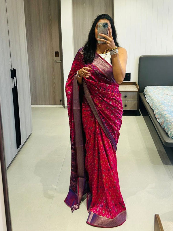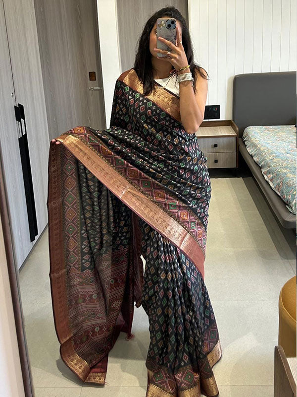 π Weave: Semi Dola Silk with Jacquard Border β crafted to match the original Patola border in design and detail.