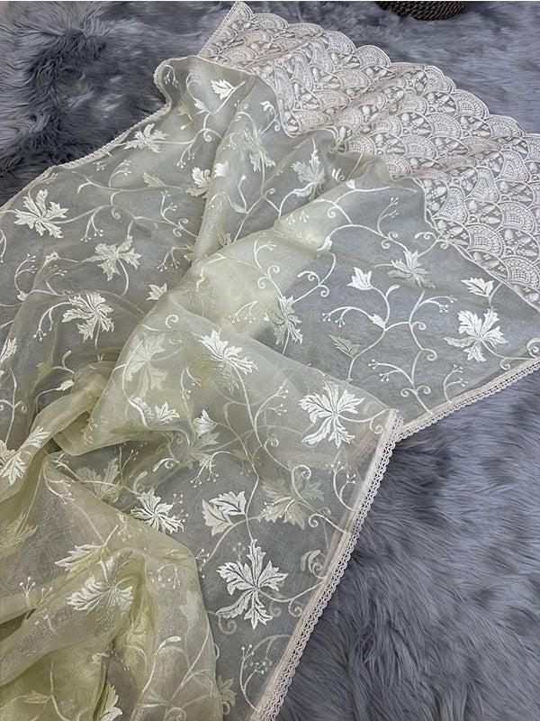 Superb Soft Refined Organza Silk Saree with Lucknowi Thread Chikankari & Viscose Work Border SA625-750