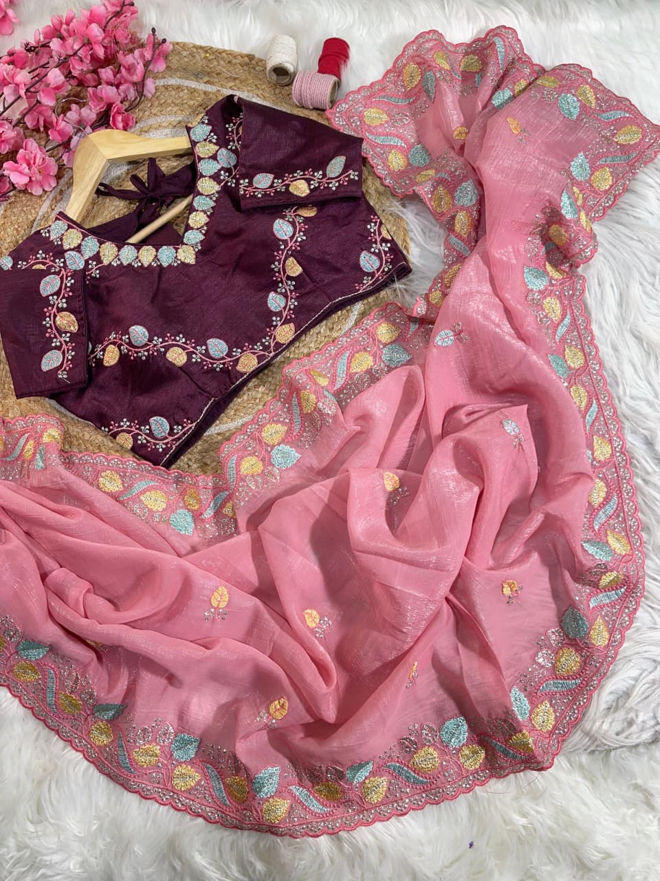 Experience luxury in every drape with this pure soft crunchy silk saree, designed with a natural shimmering shine that elevates your festive look. Featuring delicate embroidery thread work, rich heavy borders, and butta motifs across the saree, this masterpiece is finished with an elegant aarco border for a regal touch.
