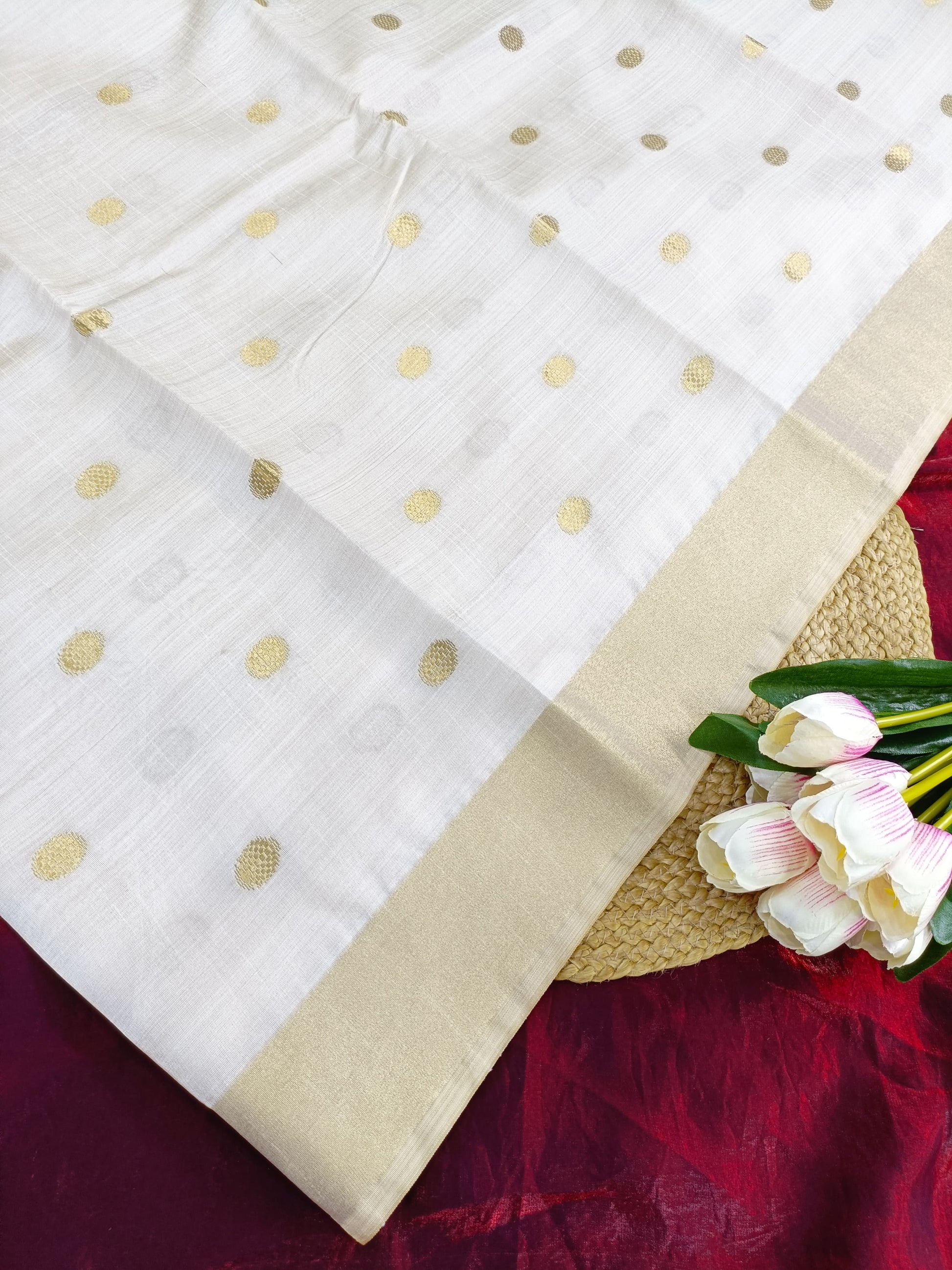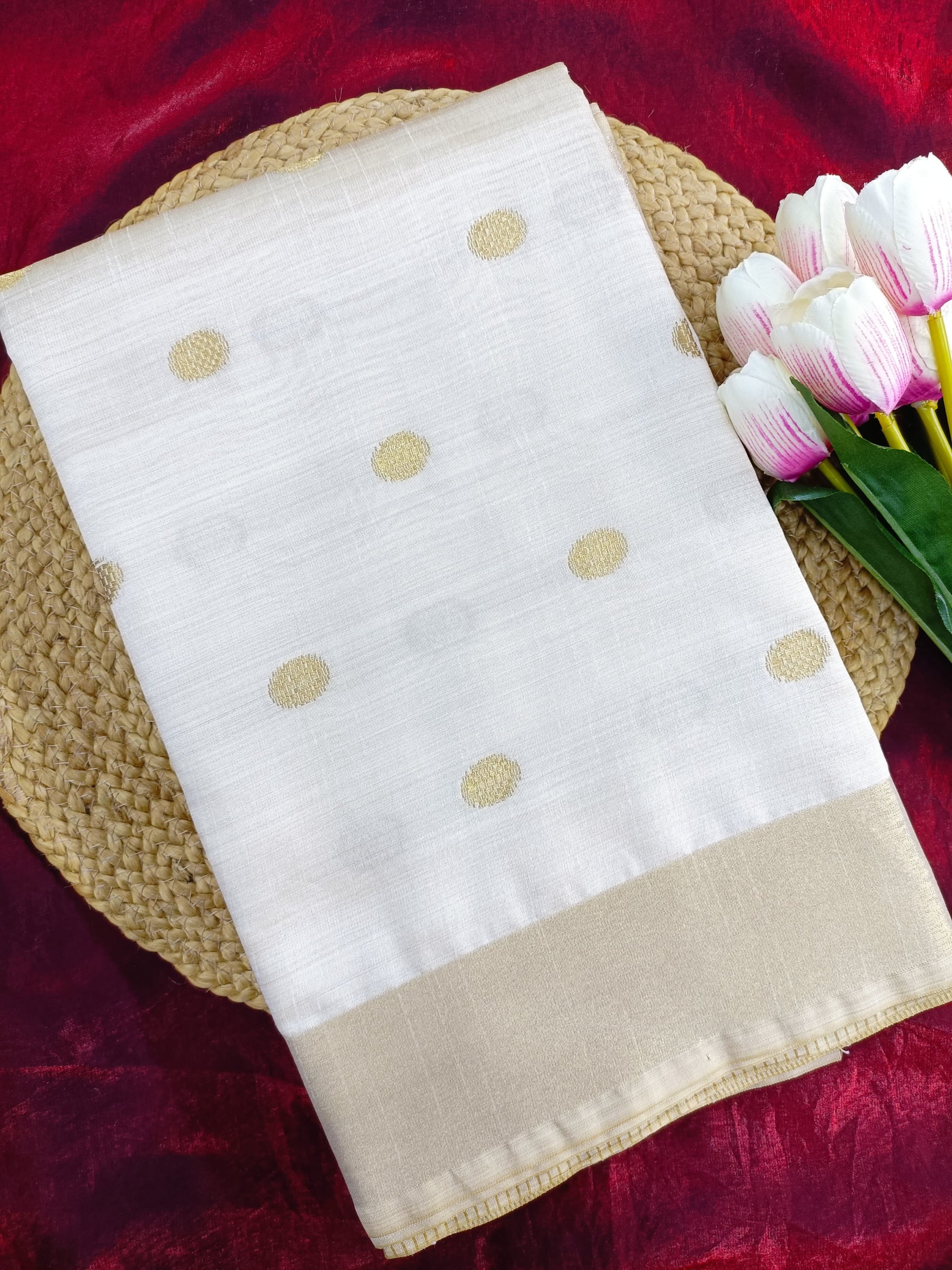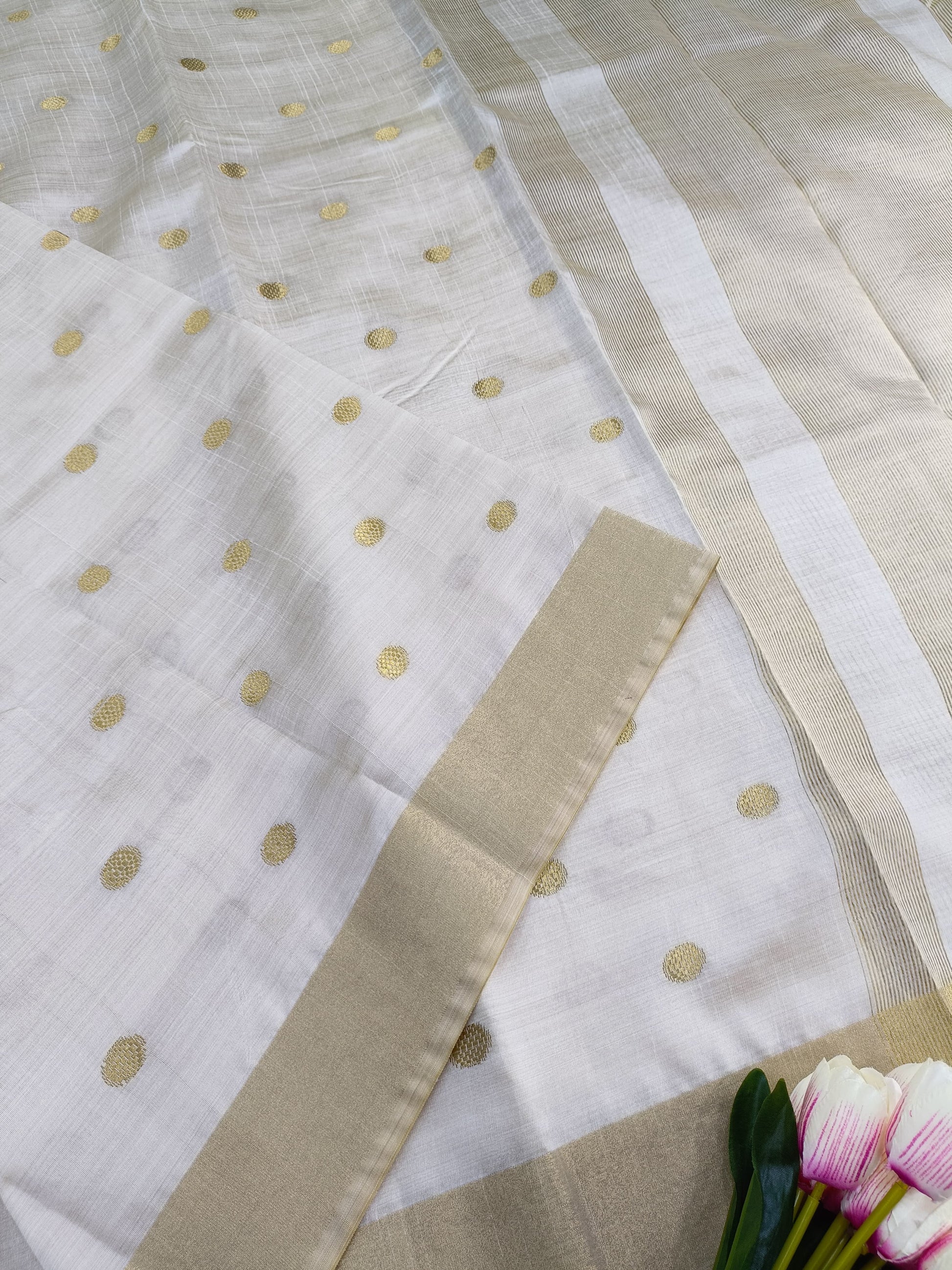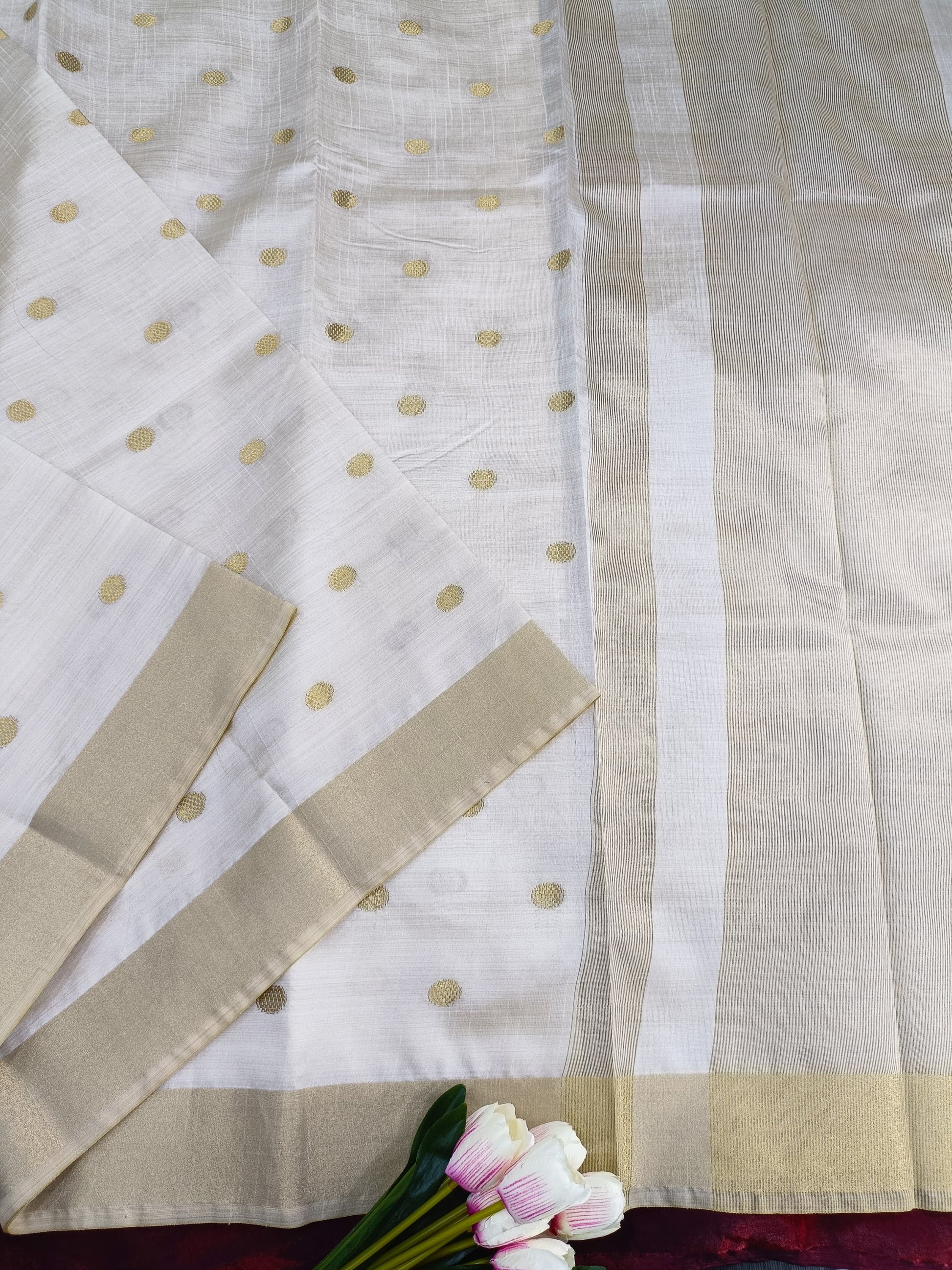 Traditional Tussar Silk Saree with Gold Border & Stylish Chit Pallu SA825-960