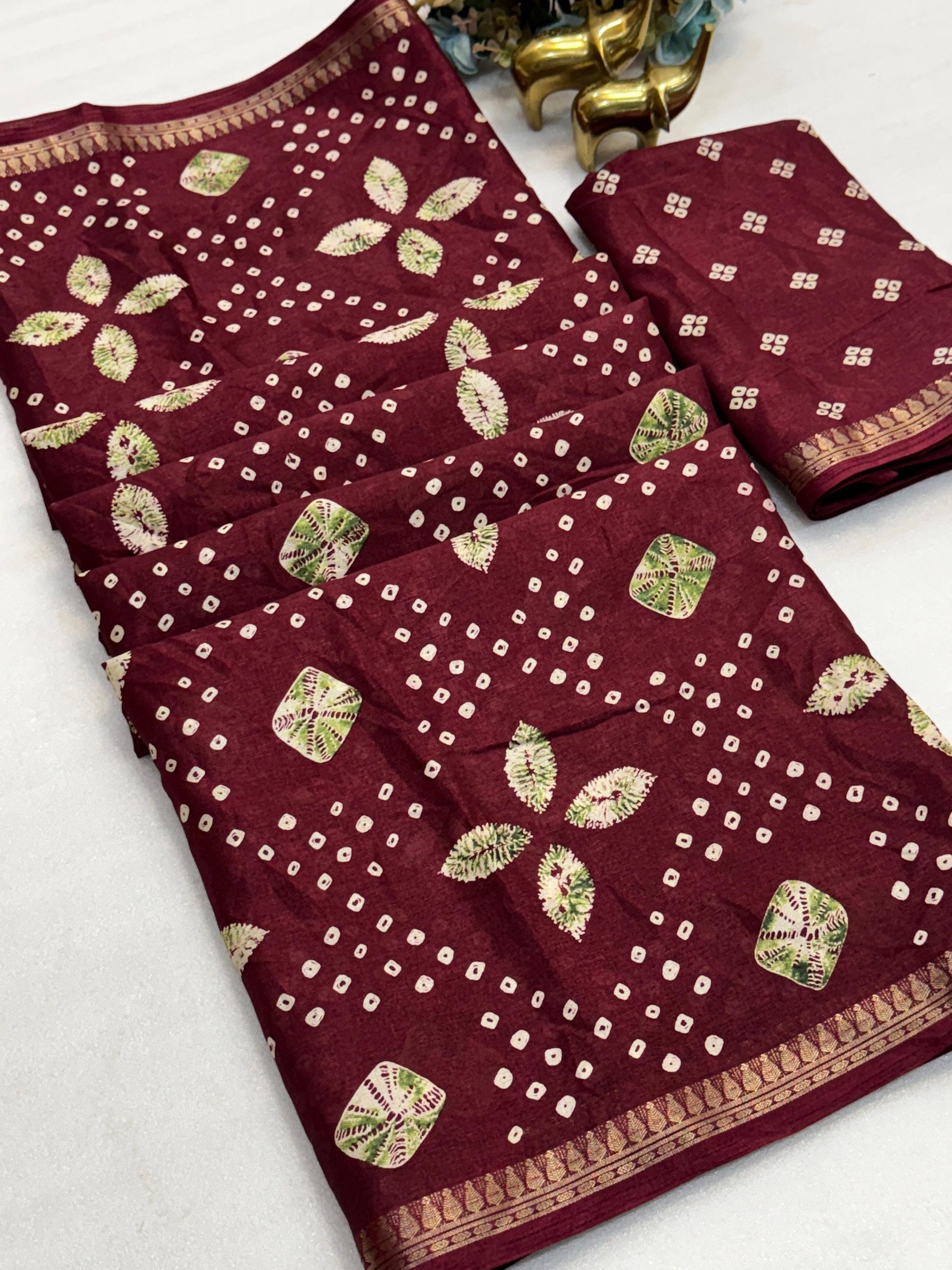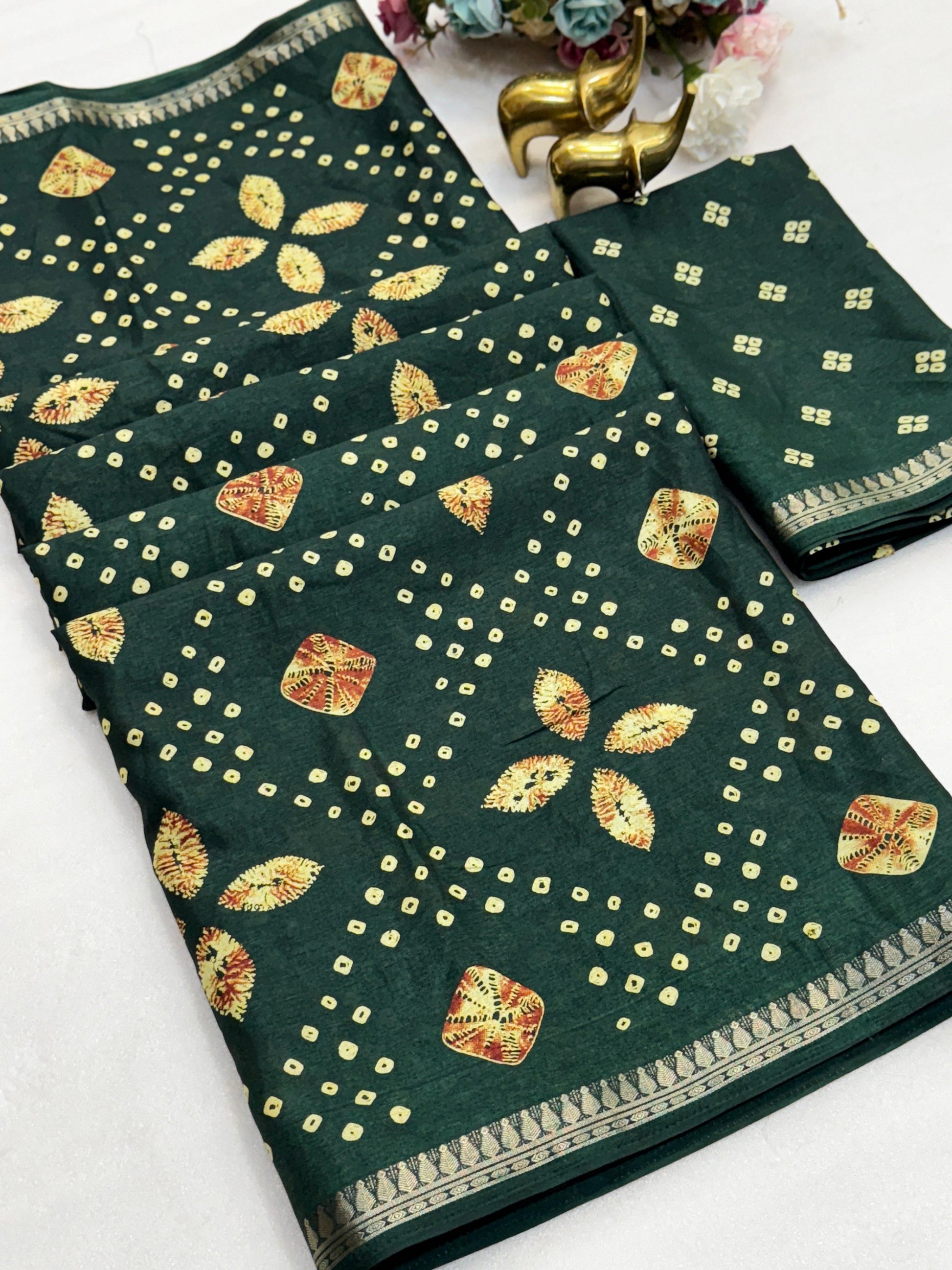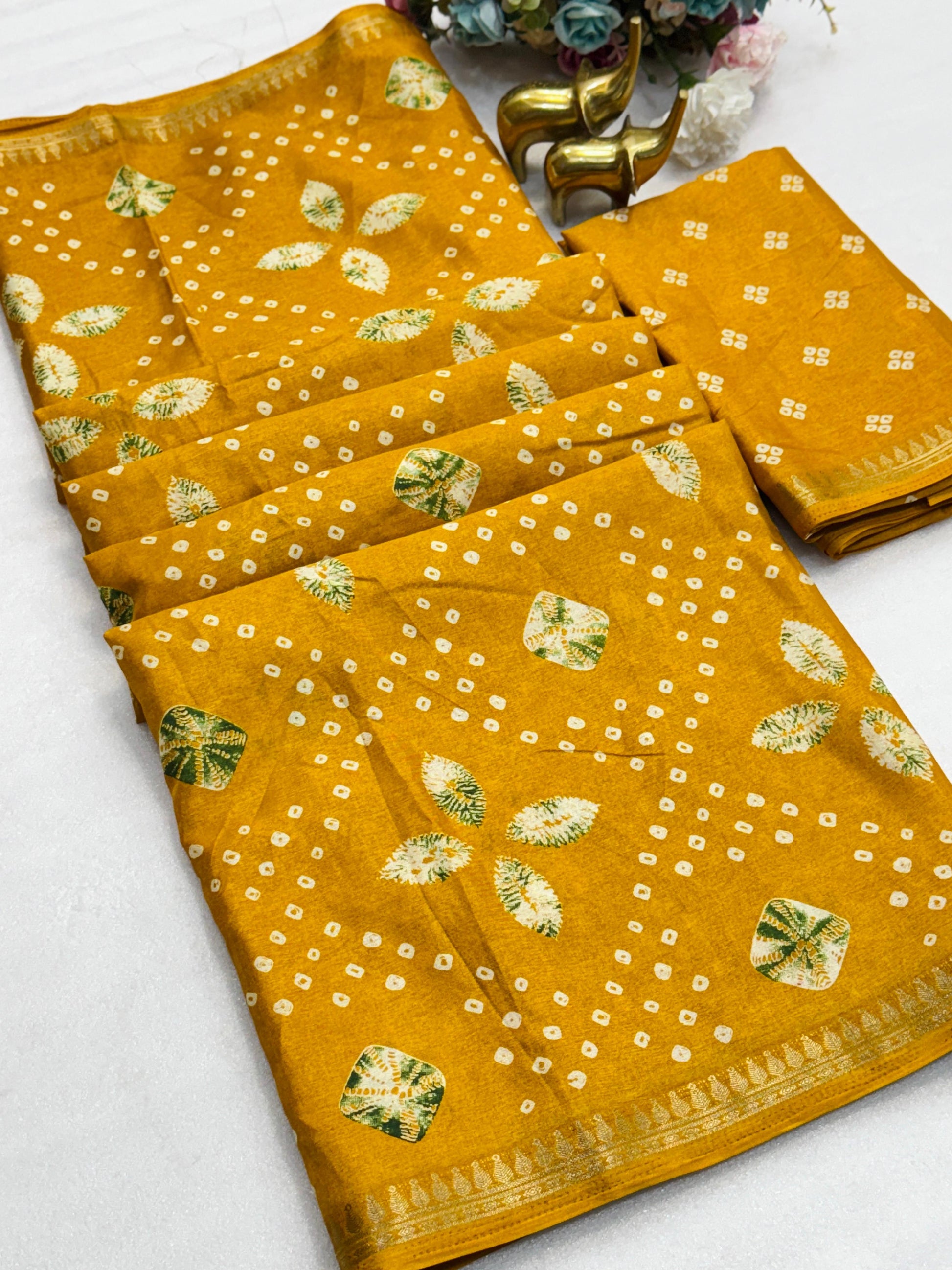 Tussar Silk Saree with Bandhani Print & Jacquard Border SA925-1258