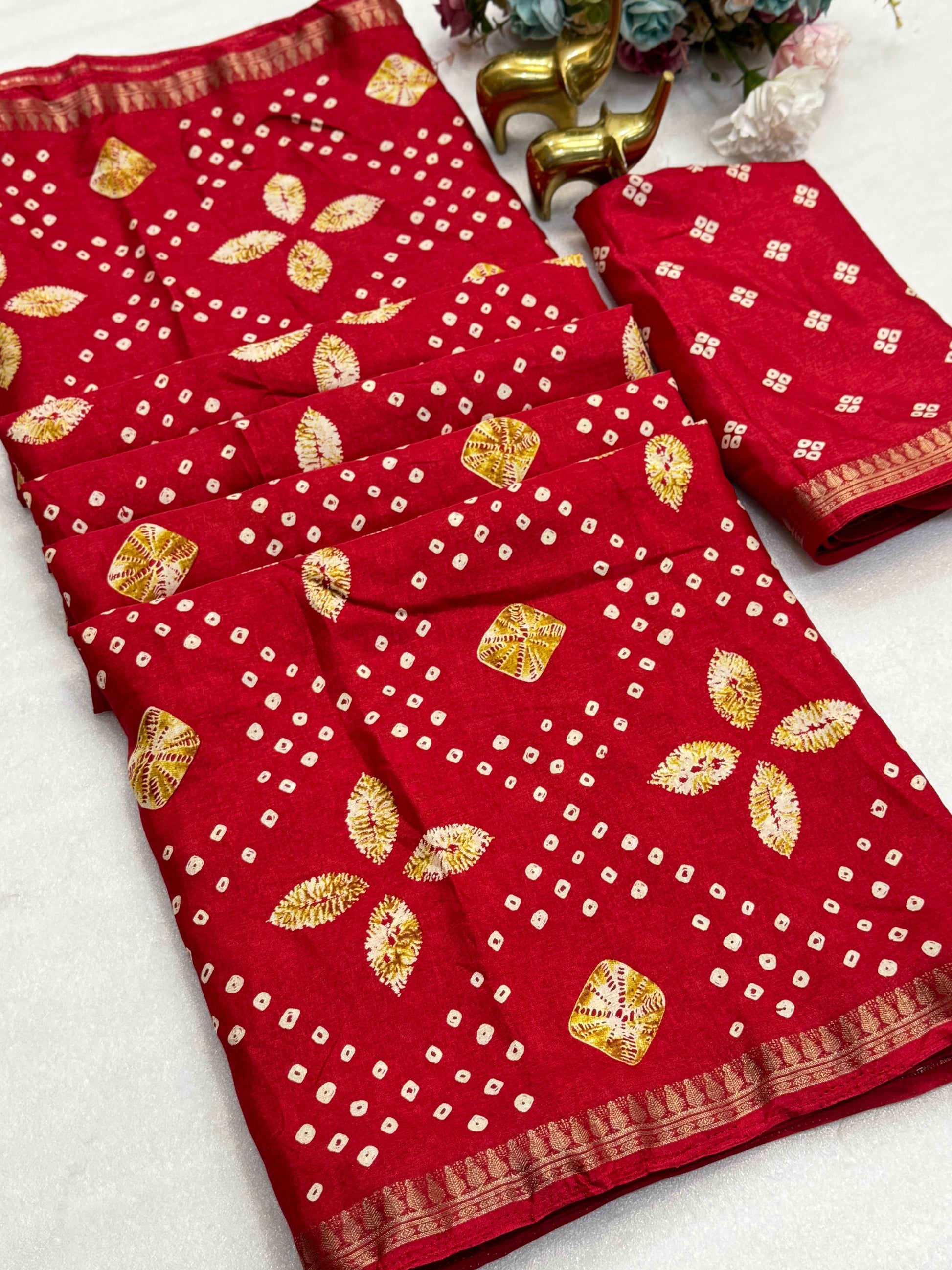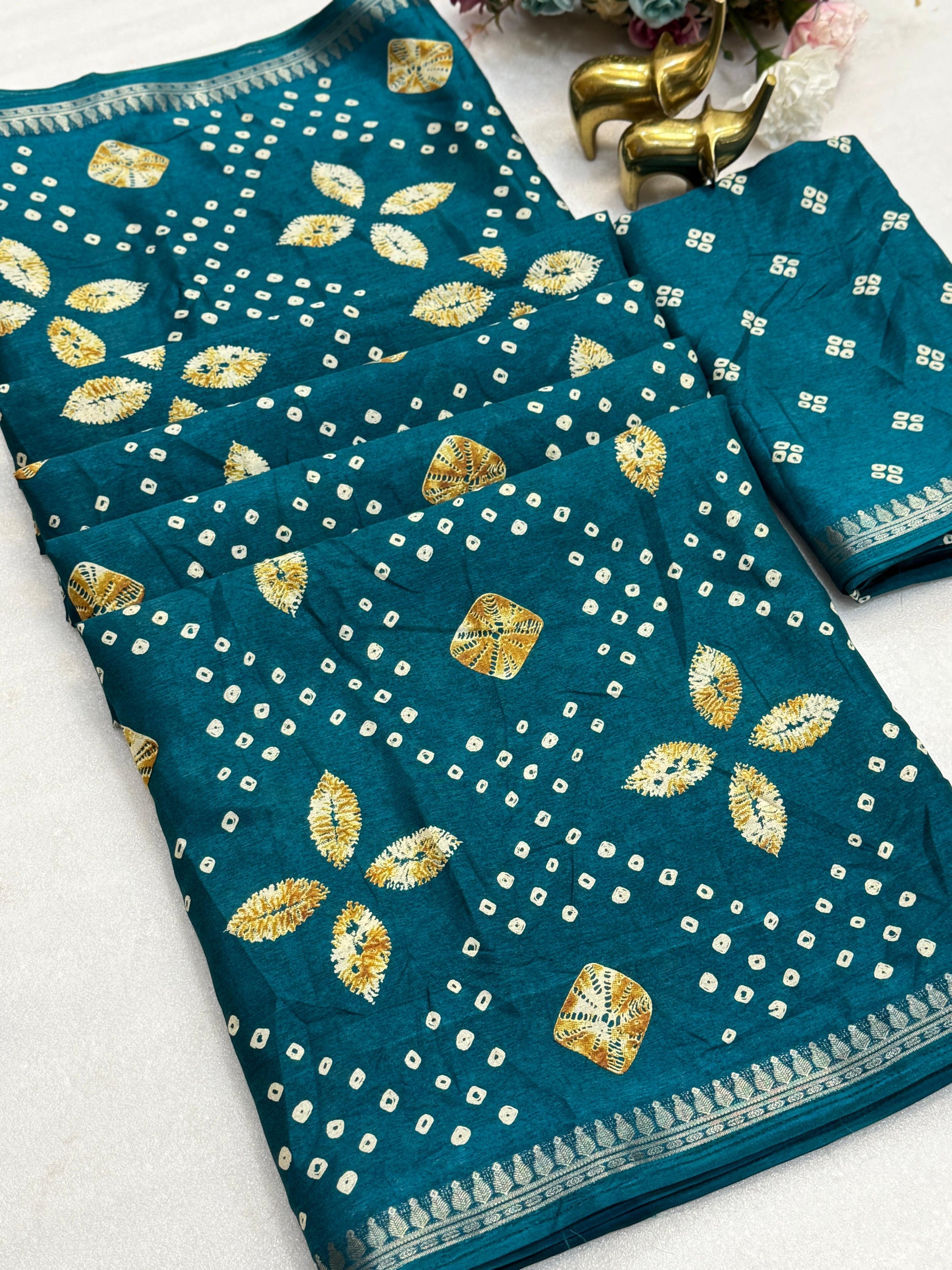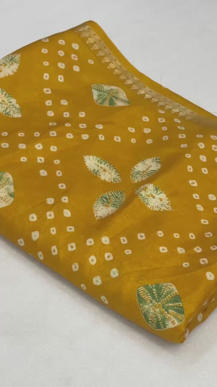Tussar Silk Saree with Bandhani Print & Jacquard Border SA925-1258