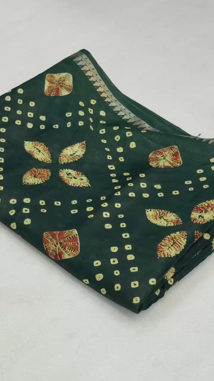 Step into timeless elegance with this exquisite tassar silk saree. The soft, natural drape of the tassar silk serves as a canvas for the captivating, all-over bandhani print, a testament to the rich heritage of Indian textiles. The saree is framed by a beautifully crafted jacquard woven border that adds a luxurious texture and a touch of golden sheen. Itβs paired with a striking, contrasting batik print blouse that brings a contemporary edge to the traditional design. This saree is a celebration of craftsmanship, perfect for a wedding, festival, or any event where you want to make a graceful statement.