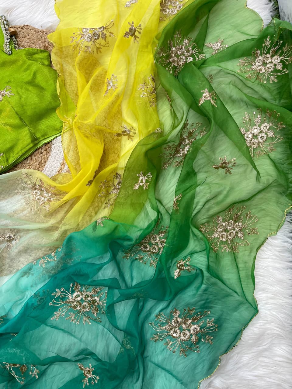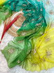Indulge in timeless elegance with this Very Soft & Elegant Teby Peding Prism Fabric Saree, designed to deliver a truly rich and graceful look. The saree is beautifully adorned with heavy embroidery butta work all over, enhanced with 3 mm sequin detailing that adds subtle sparkle and festive charm.