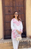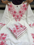 WHITE PURE LILAN EMBROIDERED KURTI SET || SA725-890